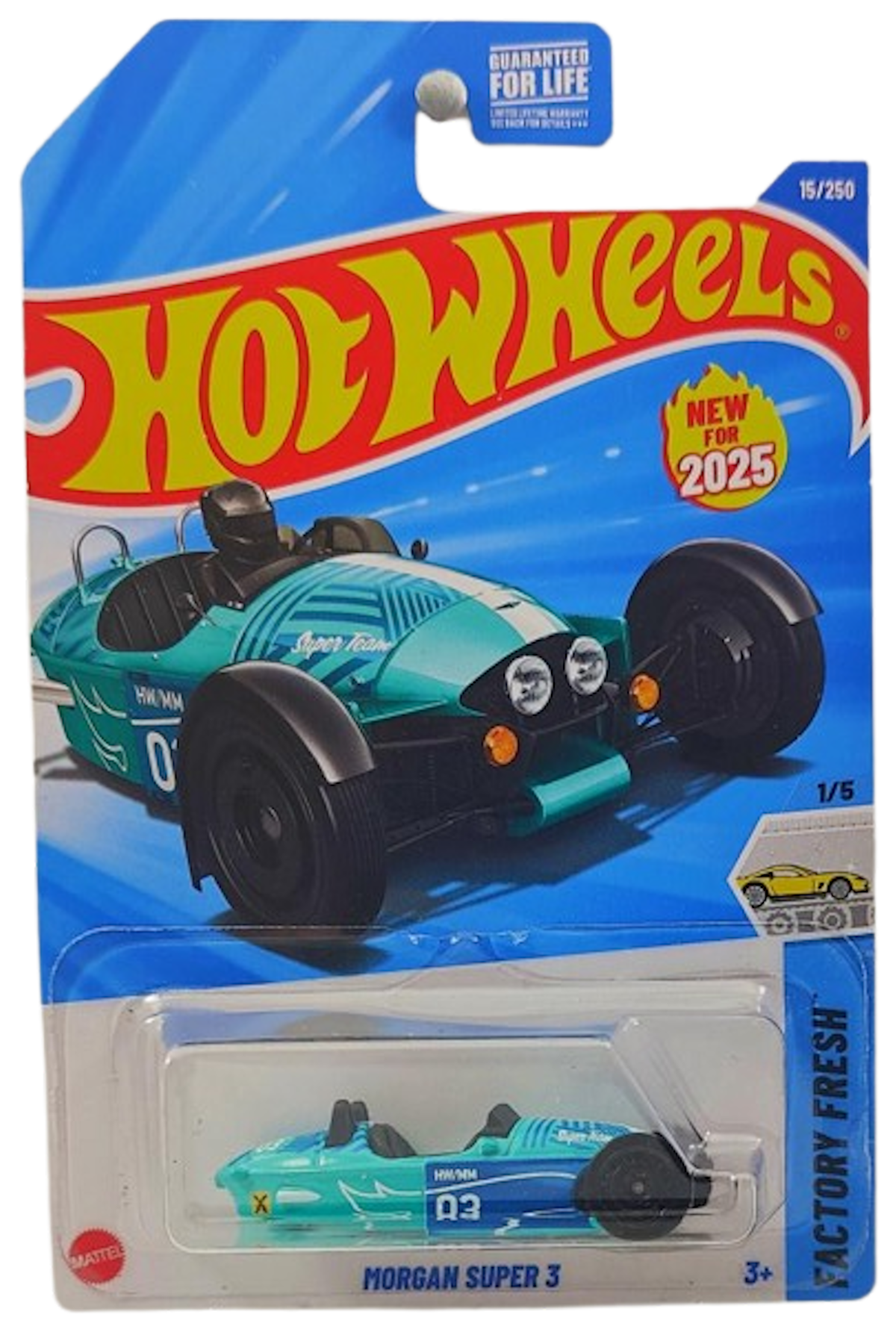 Hot Wheels 2025 - Collector # 015/250 - Factory Fresh 1/5 - New Models - Morgan Super 3 - Aqua / #03 - USA Card - MPN HYW13