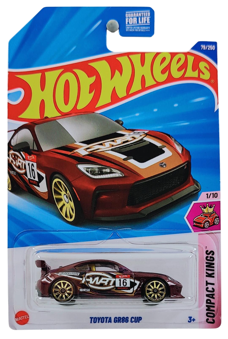 Hot Wheels 2025 - Collector # 079/250 - Compact Kings 1/10 - Toyota GR86 Cup - Metalflake Dark Red / #16 - USA Card - MPN HYX74