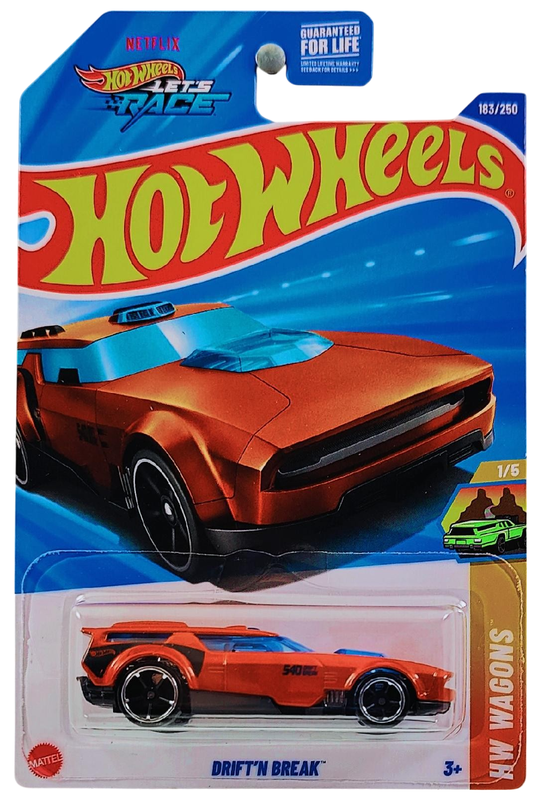 Hot Wheels 2025 - Collector # 183/250 - HW Wagons 1/5 - Drift'n Break - Metalflake Orange - OH5SP Wheels - USA 'Let's Race' Card